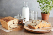Zdjęcie "Pyszne cinnamon roll ciasto na stole" może być wykorzystywane do celów osobistych i komercyjnych zgodnie z warunkami zakupionej licencji Royalty-free. Obraz jest dostępny do pobrania w jakości wysokiej rozdzielczości do 5760x3840.