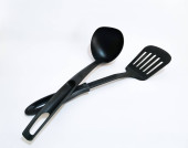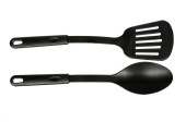 czarne plastikowe naczynia kuchenne nad białym