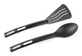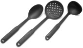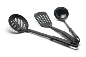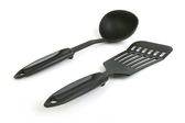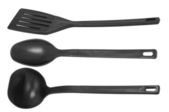 czarne plastikowe naczynia kuchenne nad białym