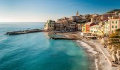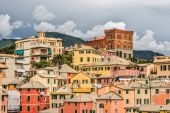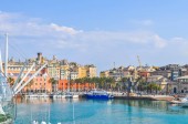 Widok z Genui i stary neighborood zwanej Castello; Wieża w lewym górnym rogu nazywa Torre degli Embriaci