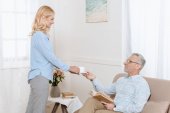 W średnim wieku mężczyzn i kobiet, taniec przy kominku w przytulnej sali