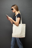 Zdjęcie "Hipster dziewczyna odbiera śmieszne sms wiadomości od znajomych na cyfrowych komórkowych przy użyciu połączenia z Internetem 4g wolna" może być wykorzystywane do celów osobistych i komercyjnych zgodnie z warunkami zakupionej licencji Royalty-free. Obraz jest dostępny do pobrania w jakości wysokiej rozdzielczości do 5760x3840.
