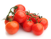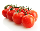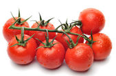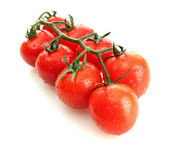 Wiśniowe pomidory na oddział z kropli na białym tle
