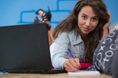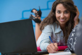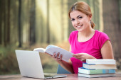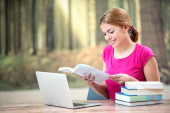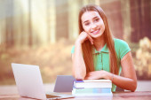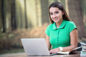 Zdjęcie "Dziewczyna przy użyciu tabletu poza" może być wykorzystywane do celów osobistych i komercyjnych zgodnie z warunkami zakupionej licencji Royalty-free. Obraz jest dostępny do pobrania w jakości wysokiej rozdzielczości do 5760x3840.
