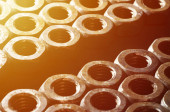 Kupie orzechy zardzewiały zbliżenie. Retro koncepcja przemysłowej