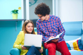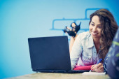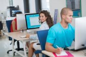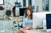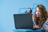 start-up business, programista pracujący na komputerze w nowoczesnym biurze