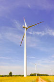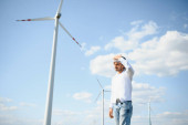 dziewczynka gospodarstwa płótnie zielonego i windturbine w tle