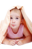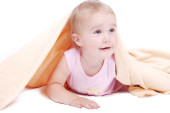 piękne uśmiechający się dziecko owinięte w furry bla