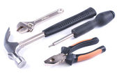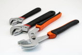 Regulowany kleszcze hydrauliczne i klucz do rur. Na białym tle Zdjęcie