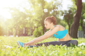 Sprawny, młoda kobieta, ćwiczenia na świeżym powietrzu, zdrowego stylu życia