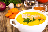 Zdjęcie "Zupa z dyni z świeżej zielonej cebuli" może być wykorzystywane do celów osobistych i komercyjnych zgodnie z warunkami zakupionej licencji Royalty-free. Obraz jest dostępny do pobrania w jakości wysokiej rozdzielczości do 5760x3840.