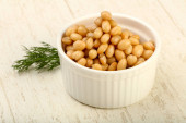 Białej fasoli w misce z koperkiem oddział