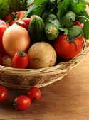 świeże warzywa i zioła wymieszać w wiklinowym koszu