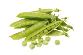 Zielone ziarno grochu na białym tle