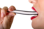 młoda kobieta gryzienie słodycze