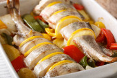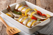 Zdjęcie "Dorsz pieczony z warzywami w naczyniu do pieczenia z bliska. Ho" może być wykorzystywane do celów osobistych i komercyjnych zgodnie z warunkami zakupionej licencji Royalty-free. Obraz jest dostępny do pobrania w jakości wysokiej rozdzielczości do 5760x3840.