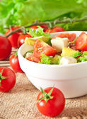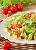 Sałatka z awokado, pomidory i mozzarella z sosem miodu boczek