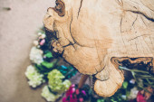 zbliżenie: piękne kolorowe kwiaty z plików cookie na podłoże drewniane