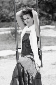 kobieta z krzesłem na drodze