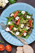 Sałatka z serem pleśniowym, pomidory, groszek zielony