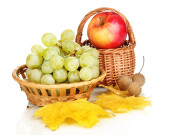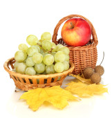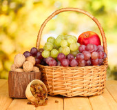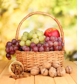 winogron w kosz z orzechami na drewnianym stole