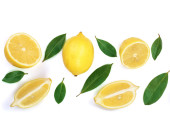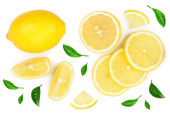 cytryny i plasterki z liść na białym tle na białym tle z miejsca kopiowania tekstu. Widok płaski świeckich, top