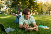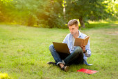 Zdjęcie "Młody człowiek czytania książki w miejsce park" może być wykorzystywane do celów osobistych i komercyjnych zgodnie z warunkami zakupionej licencji Royalty-free. Obraz jest dostępny do pobrania w jakości wysokiej rozdzielczości do 5760x3840.