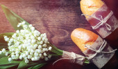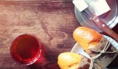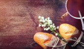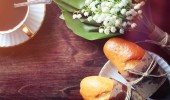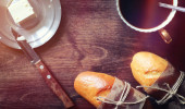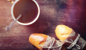 Świeże bułeczki na śniadanie. Bułka z masłem do filiżanki kawy w