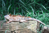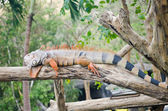 iguana brązowy gruntów leżących na oddziale w tropikalnym parku