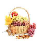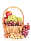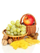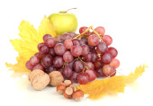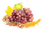 zielony winogron z orzechami na białym tle