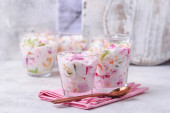 Zdjęcie "Berry słodkie koktajle w miskach. Zdrowy deser. Widok z góry" może być wykorzystywane do celów osobistych i komercyjnych zgodnie z warunkami zakupionej licencji Royalty-free. Obraz jest dostępny do pobrania w jakości wysokiej rozdzielczości do 5760x3840.