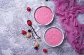 Berry słodkie koktajle w miskach. Zdrowy deser. Widok z góry