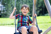 Zdjęcie "Chłopiec dziecko śmieszne zabawy z łańcucha huśtawka na plac zabaw podczas deszczu" może być wykorzystywane do celów osobistych i komercyjnych zgodnie z warunkami zakupionej licencji Royalty-free. Obraz jest dostępny do pobrania w jakości wysokiej rozdzielczości do 5760x3840.