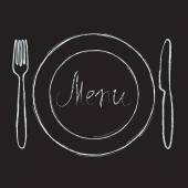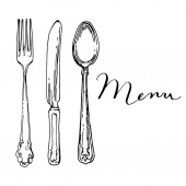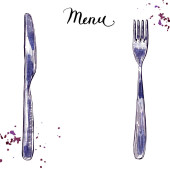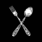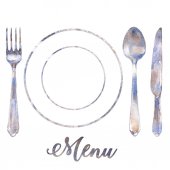 Sztućce stołowe vintage personel kuchni stalowa, widelec, płyta, łyżka i projekt akwarela, ilustracja na białym tle sztućce dla menu noża