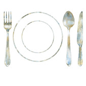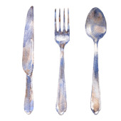 Zdjęcie "Sztućce stołowe vintage personel kuchni stalowa, widelec, płyta, łyżka i projekt akwarela, ilustracja na białym tle sztućce dla menu noża" może być wykorzystywane do celów osobistych i komercyjnych zgodnie z warunkami zakupionej licencji Royalty-free. Obraz jest dostępny do pobrania w jakości wysokiej rozdzielczości do 5760x3840.