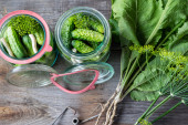 Słoiki kiszone ogórki marynowane w rustykalnym stylu tabeli