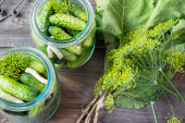 Zdjęcie "Słoiki kiszone ogórki marynowane w rustykalnym stylu tabeli " może być wykorzystywane do celów osobistych i komercyjnych zgodnie z warunkami zakupionej licencji Royalty-free. Obraz jest dostępny do pobrania w jakości wysokiej rozdzielczości do 5760x3840.
