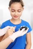 Cukrzyca Poradnia dla dzieci. Dziecko z cukrzycą podczas wstrzykiwania insuliny.