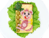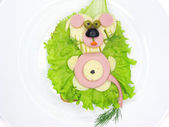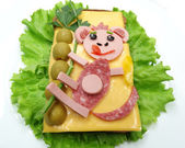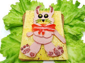 kreatywne jedzenie kanapka z kiełbasą i serem podawane na sałacie