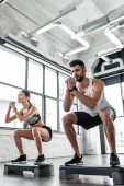 Młoda kobieta sportowe skoki na kole treningu w siłowni