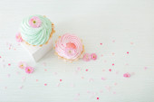 Zdjęcie "Babeczki z różowy krem, makaroniki i róże " może być wykorzystywane do celów osobistych i komercyjnych zgodnie z warunkami zakupionej licencji Royalty-free. Obraz jest dostępny do pobrania w jakości wysokiej rozdzielczości do 5760x3840.