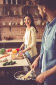 Zdjęcie "Para gotowania razem w kuchni w domu" może być wykorzystywane do celów osobistych i komercyjnych zgodnie z warunkami zakupionej licencji Royalty-free. Obraz jest dostępny do pobrania w jakości wysokiej rozdzielczości do 5760x3840.