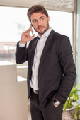 Zdjęcie "Zadowolony mężczyzna rozmawia przez telefon" może być wykorzystywane do celów osobistych i komercyjnych zgodnie z warunkami zakupionej licencji Royalty-free. Obraz jest dostępny do pobrania w jakości wysokiej rozdzielczości do 5760x3840.