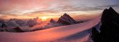 wspaniały wschód słońca nad wysoki alpejski lodowiec i szczytów w Alpach