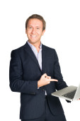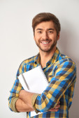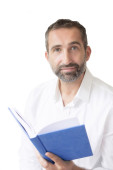 Optymistyczne profesor pozowanie z Notatnik i ołówek