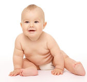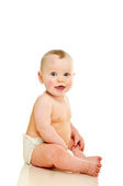 Toddler chłopiec dziecko niemowlę dziecko siedząc nago w pielucha szczęśliwy uśmiechający się