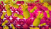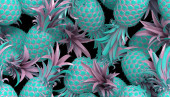 renderingu 3D wzór zielony pastel ananasy na lato fajna tła. Modne plakat z żywe kolory