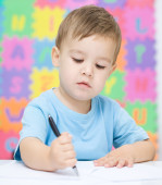 Zdjęcie "mały chłopiec jest rysunek na białym papierze" może być wykorzystywane do celów osobistych i komercyjnych zgodnie z warunkami zakupionej licencji Royalty-free. Obraz jest dostępny do pobrania w jakości wysokiej rozdzielczości do 5760x3840.