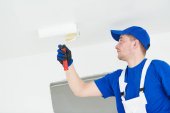 Zdjęcie "remontu. Malarz malowanie sufitu z wałkiem" może być wykorzystywane do celów osobistych i komercyjnych zgodnie z warunkami zakupionej licencji Royalty-free. Obraz jest dostępny do pobrania w jakości wysokiej rozdzielczości do 5760x3840.