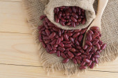 Czerwona fasola na drewno filiżanka z worek